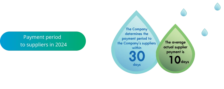 The East Water Group is committed to sustainable supply chain management, aiming to develop and strengthen its suppliers for mutual growth. The company adheres to procurement regulations, best practices, and the Supplier Code of Conduct, ensuring compliance with key sustainability principles while fostering relationships with its suppliers. The Company regularly engages with its suppliers through annual engagement activities. In 2024, the Company introduced a Supply Chain Management Handbook (detailed on the company’s website under Risk Management in Procurement topic), outlining supplier selection and evaluation criteria that encompass economic, social, and environmental dimensions. This ensures that the Company’s suppliers operate ethically and align with sustainable development goals