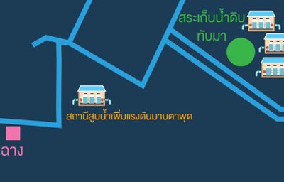 Water sources that provide backup support for the main water sources. The water must be reserved beforehand for use when there are low water levels in the main sources or water shortage. These are Samnakbok, Chachoengsao, and Thab Ma raw water ponds.