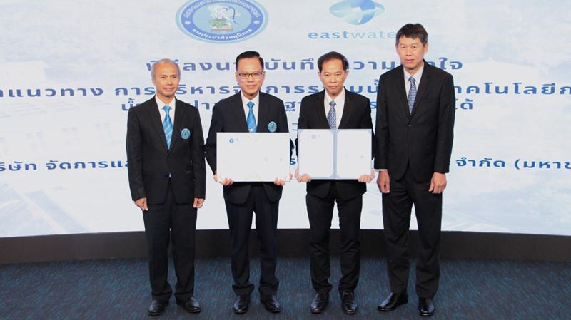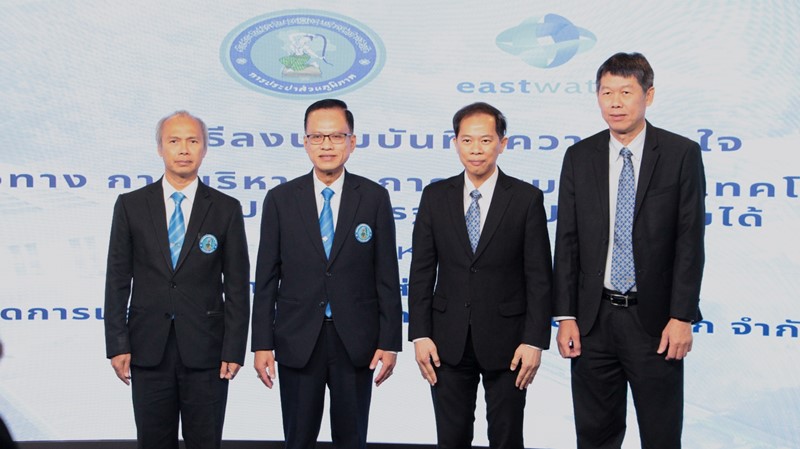 Eastern Water Resources Development and Management Public Company Limited or East Water, led by Mr. Sombat Yusamart, Acting President and Deputy Managing Director Finance and Accounting, signed the memorandum of understanding to participate in the study of approaches for raw water system management services and to study the tap water production technology to meet drinking water standards. This was joined by the Provincial Waterworks Authority (PWA), led by Mr. Chakkraphong Khamchan, Acting Governor of the Provincial Waterworks Authority, as the signatory of this memorandum of understanding.
