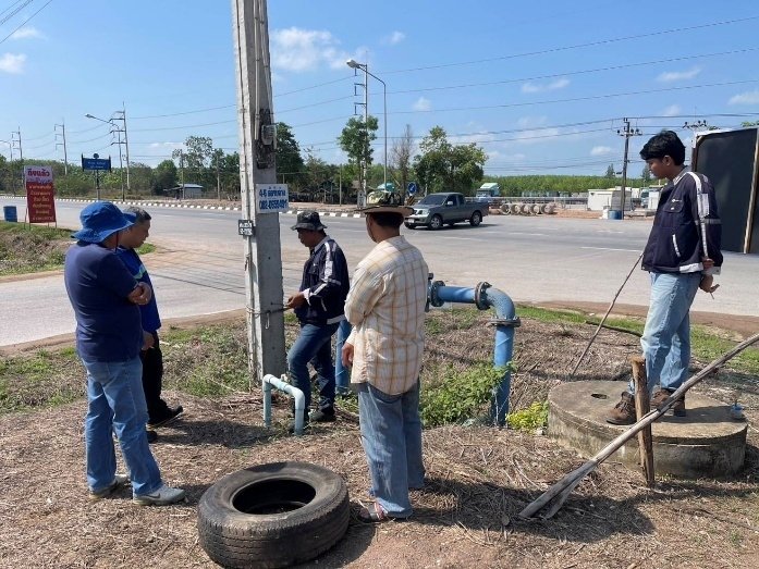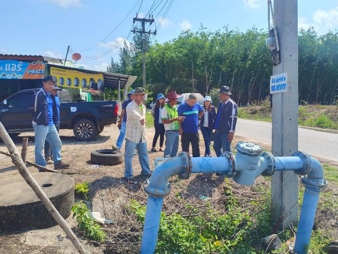 แผนกกิจการสัมพันธ์และ CSR (1) ฝ่ายสื่อสารองค์กรร่วมกับแผนกโครงข่ายท่อและโยธา ฝ่ายซ่อมบำรุง และฝ่ายบริหารโครงการก่อสร้างสำรวจพื้นที่ร่วมกับผู้นำชุมชน บริเวณจุดจ่ายน้ำชุมชนบริเวณ หมู่ 1 ต.ชุมแสง อ.วังจันทร์ จ.ระยอง เพื่อตรวจสอบการเชื่อมต่อท่อส่งน้ำ ของชุมชน