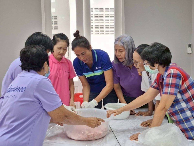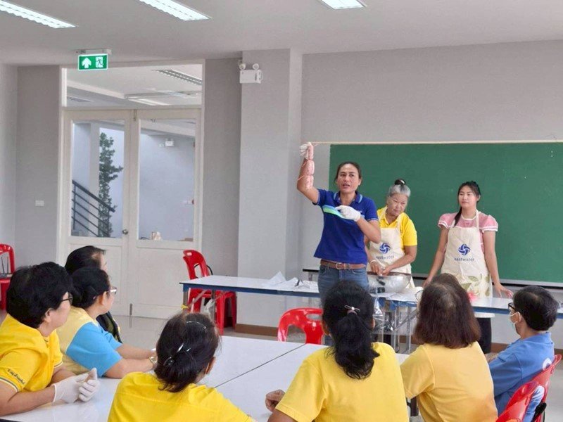 แผนกชุมชนสัมพันธ์และ CSR จัดกิจกรรมพบปะเครือข่ายชุมชน กลุ่มสตรีและผู้สูงอายุ ในพื้นที่องค์การบริหารส่วนตำบลท่าสะอ้าน อ.บางปะกง จ.ฉะเชิงเทรา สอนทำไส้กรอกอีสาน เพื่อสร้างความผูกพันใกล้ชิดกับชุมชน เสริมสร้างรายได้ ลดรายจ่ายชุมชนในพื้นที่ฯ พร้อมสอดแทรกความเข้าใจที่ถูกต้องเกี่ยวกับบทบาทและภารกิจของอีสท์วอเตอร์