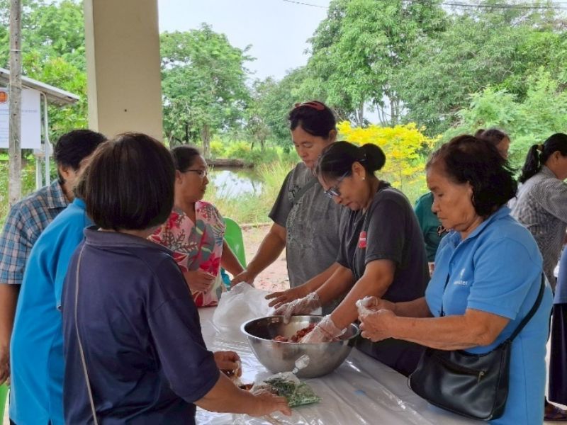แผนกชุมชนสัมพันธ์และ CSR จัดกิจกรรมพบปะเครือข่ายชุมชน กลุ่มสตรีและผู้สูงอายุในพื้นที่อบต.สำนักบก อ.เมือง จ.ชลบุรี สอนทำไส้กรอกอีสาน เพื่อสร้างความผูกพันใกล้ชิดกับชุมชน เสริมสร้างรายได้ ลดรายจ่ายชุมชนในพื้นที่ฯ พร้อมสอดแทรกความเข้าใจที่ถูกต้องเกี่ยวกับบทบาทและภารกิจของอีสท์วอเตอร์
