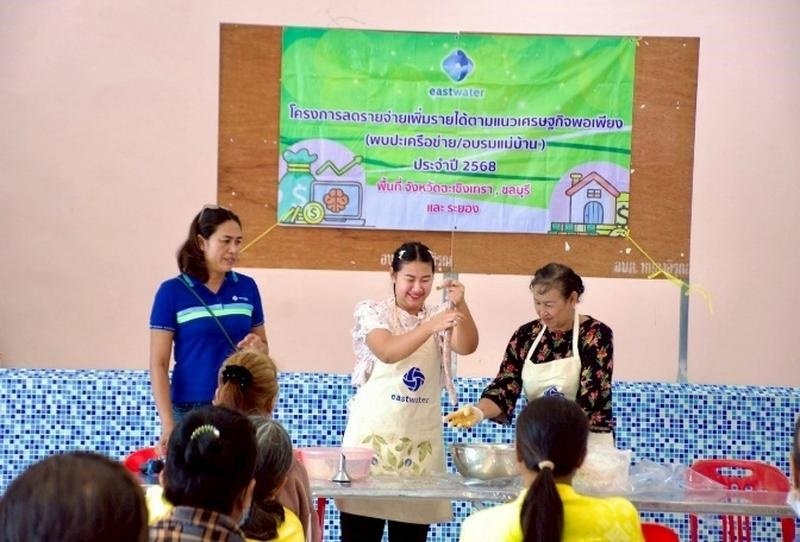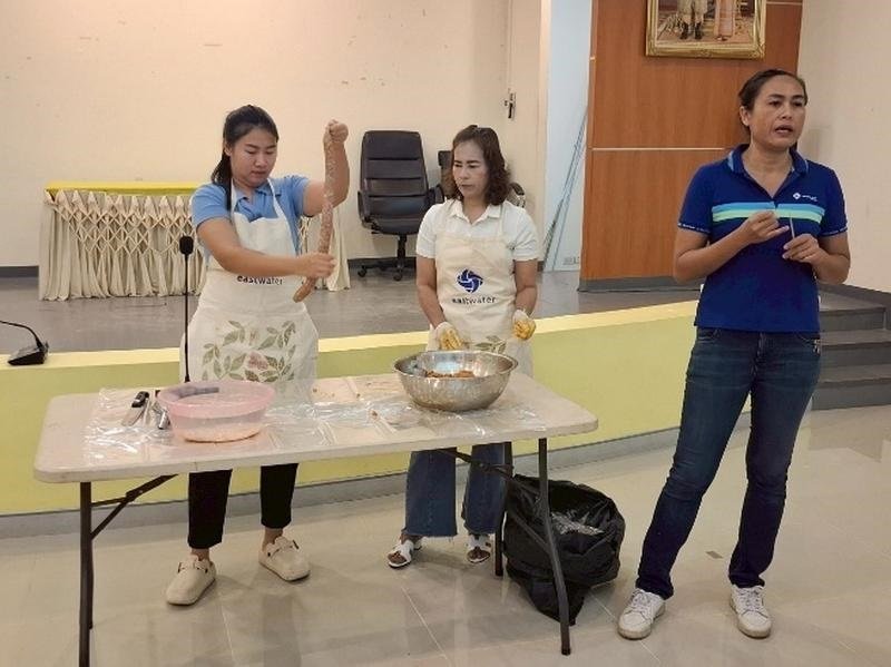 แผนกชุมชนสัมพันธ์และ CSR จัดกิจกรรมพบปะเครือข่ายชุมชน กลุ่มสตรีและผู้สูงอายุในพื้นที่ เทศบาลนครเจ้าพระยาสุรศักดิ์ อ.ศรีราชา จ.ชลบุรี สอนทำไส้อั่ว เพื่อสร้างความผูกพันใกล้ชิด กับชุมชน เสริมสร้างรายได้ ลดรายจ่ายชุมชนในพื้นที่ฯ พร้อมสอดแทรกความเข้าใจที่ถูกต้อง เกี่ยวกับบทบาทและภารกิจของอีสท์วอเตอร์