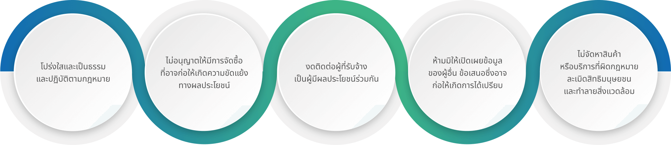 2.7 ผู้ขาย ผู้รับจ้าง หรือผู้ให้บริการจะต้องดำเนินธุรกิจตามหลักจริยธรรมอย่างเคร่งครัดโดยไม่ทุจริต คอร์รัปชัน ติดสินบน หรือประกอบธุรกิจผิดกฎหมาย ต้องให้ความเคารพต่อสิทธิของแรงงาน และปฏิบัติต่อแรงงานอย่างเป็นธรรมตามบรรทัดฐานที่เป็นสากล โดยคำนึงถึงผลกระทบด้านสิ่งแวดล้อม ความรับผิดชอบต่อสังคมและธรรมาภิบาล หรือการกำกับดูแลกิจการที่ดี (Environmental, Social and Governance ; ESG) ซึ่งเป็นส่วนหนึ่งของการบริหารห่วงโซ่อุปทานอย่างยั่งยืน