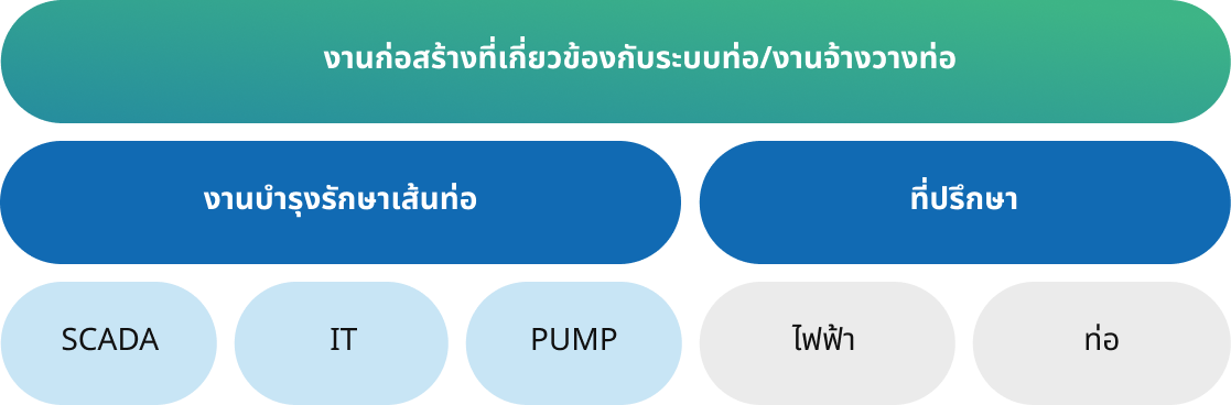 - การจ้างวางท่อส่งน้ำ หมายถึง ผู้รับเหมาวางท่อส่งน้ำดิบ และ/หรือ ติดตั้งสถานีจ่ายน้ำลูกค้า และ/หรือ ซ่อมแซมระบบส่งน้ำดิบ