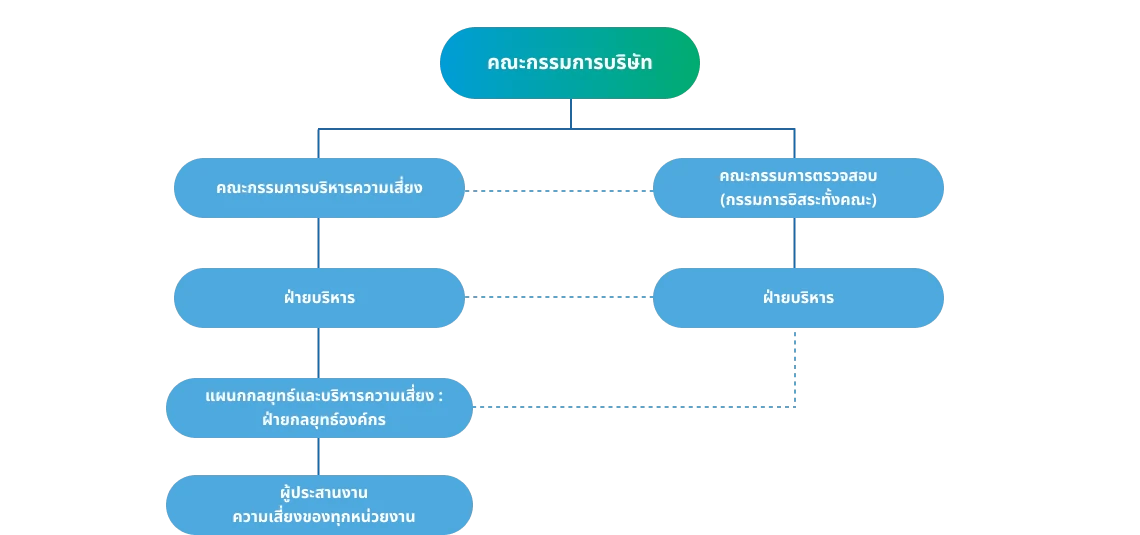 บริษัทดำเนินการบริหารความเสี่ยงบนรากฐานความยั่งยืนตามกรอบมิติสิ่งแวดล้อม มิติสังคม และมิติธรรมาภิบาล