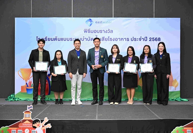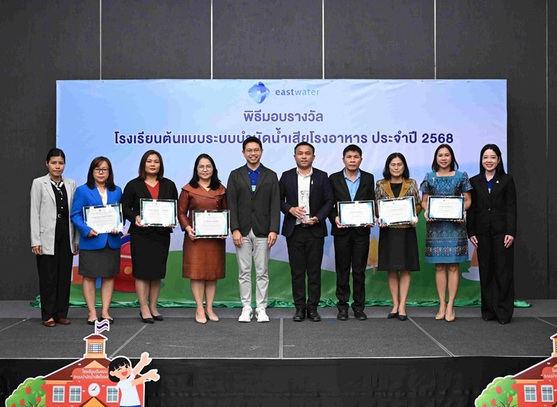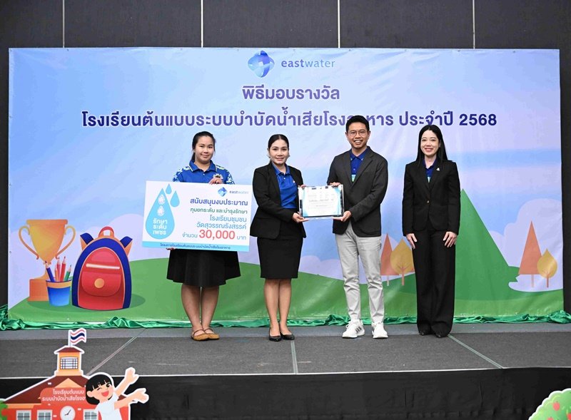 อีสท์ วอเตอร์ (EASTW) สานต่อภารกิจเพื่อความยั่งยืน จัดพิธีมอบรางวัล“โครงการโรงเรียนต้นแบบระบบบำบัดน้ำเสียโรงอาหาร” ประจำปี 2568 ขยายเครือข่ายโรงเรียนต้นแบบระบบบำบัดน้ำเสียในพื้นที่ระยอง ชลบุรี และฉะเชิงเทรา รวม 28 แห่ง พร้อมตั้งเป้าครบ 35 โรงเรียน ภายในปี 2570